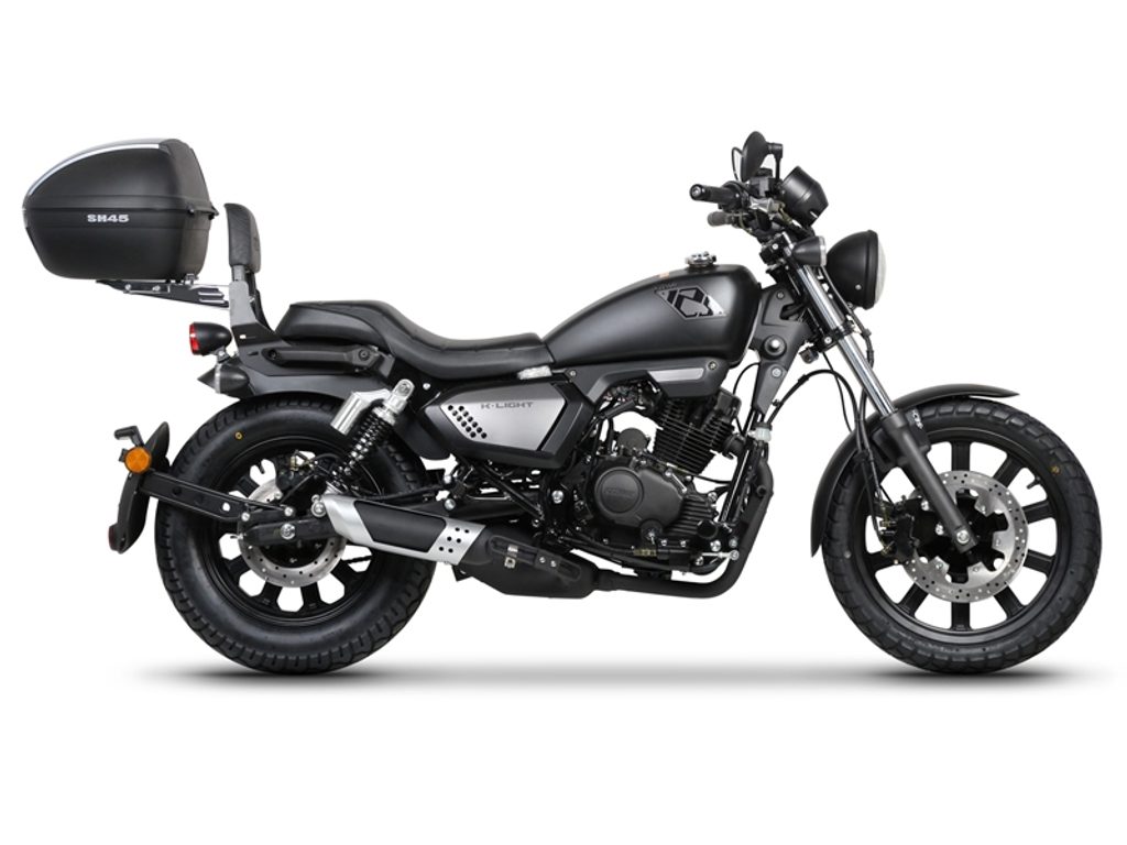 For fitting a top case on a custom motorcycle it is necessary to fix the sissybar, and then later to adapt the universal chromed rack, reference NADTN.