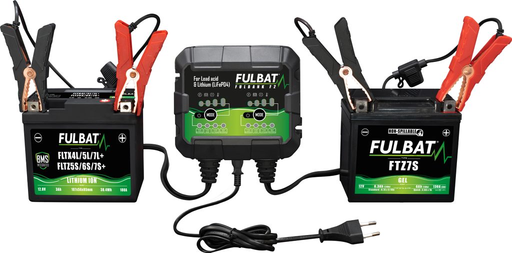 The all-new FULBANK F2 is a compact, powerful automatic dual-bank charger and maintainer, designed for Lead-Acid and Lithium powersports batteries. It can charge both 6V and 12V batteries and handle different battery technologies and voltages simultaneously on its two banks, providing complete flexibility for all your charging needs.