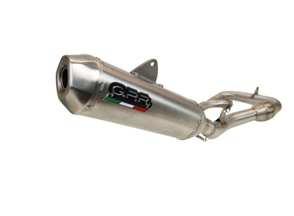 This is a GPR's FULL TITANIUM complete racing system for track use developed in collaboration with the best MXGP teams. The kit consists of a manifold with Ultrabomb expansion and new Pentacross silencers. The manifold and silencers are titanium made, this system produces an average performance increase of 2cv.