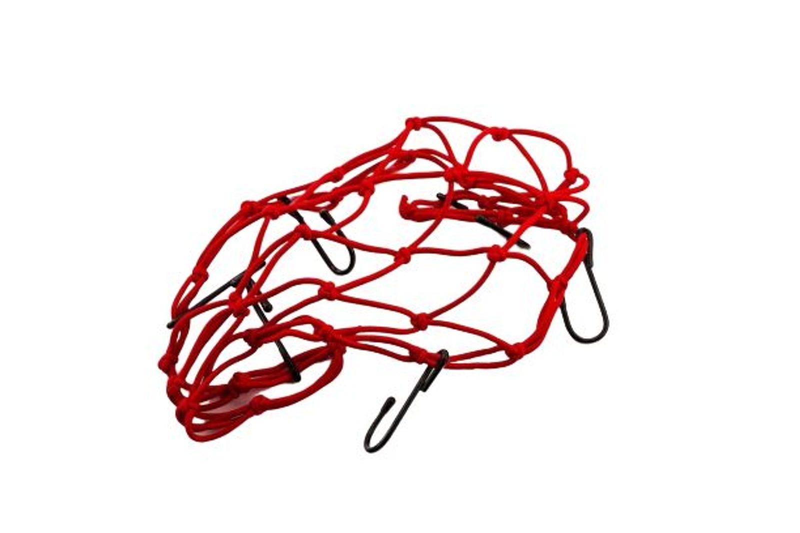Red elastic motorcycle net is the perfect accessory for punctual or usual load needs of a biker. Available in measures 350 mm x 350 mm, they are manufactured with a material of high elasticity and strength, which gives them a great capacity to adapt to the shapes of all types of packages and support a high weight. They have numerous metal hooks, lined in plastic material so as not to scratch the motorcycle, which allow the net to be fastened quickly and safely move objects in the back