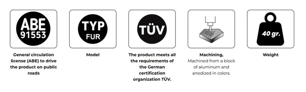Manufactured from a machined solid aluminum block, these components stand out for their high precision and strength. They feature a black anodized finish that ensures durability and an elegant appearance. They are model-specific, guaranteeing a perfect fit, and include millimetric markings that allow the footpeg to be adjusted with absolute precision according to each rider’s preferences.