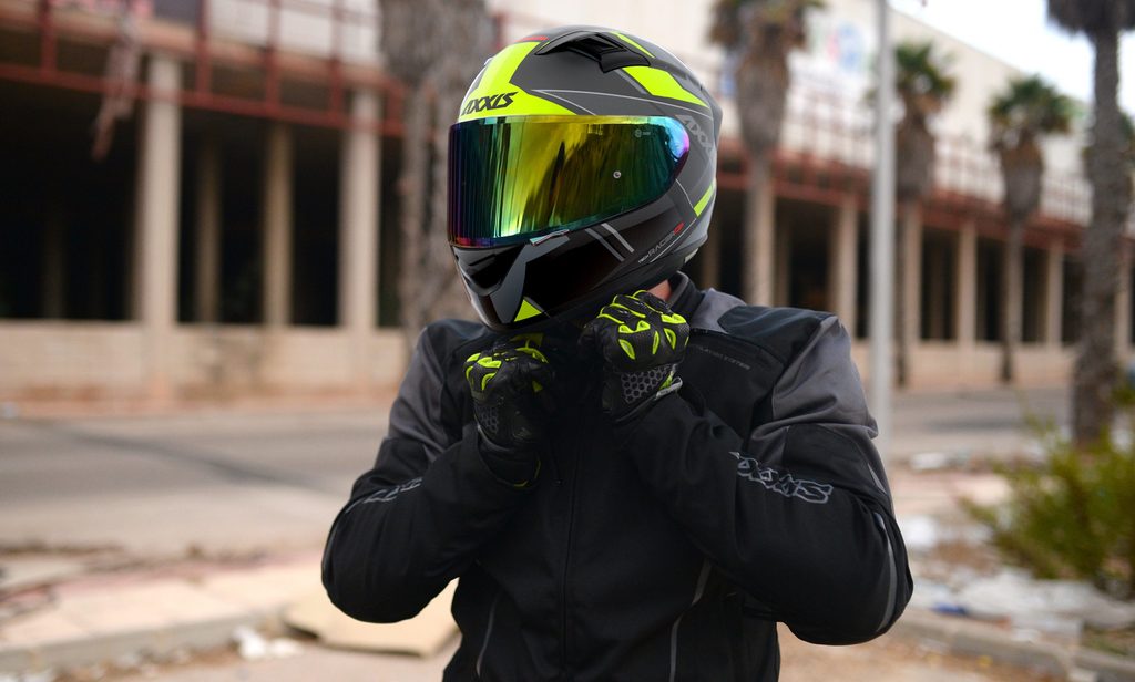 Fiber helmet with 3 external and double shell sizes screen. 100% Max Vision screen with Pinlock ready, mechanism pivoting screen, detailed study of aerodynamics, interiors Exo Linning’s high quality and high evacuation capacity of heat.