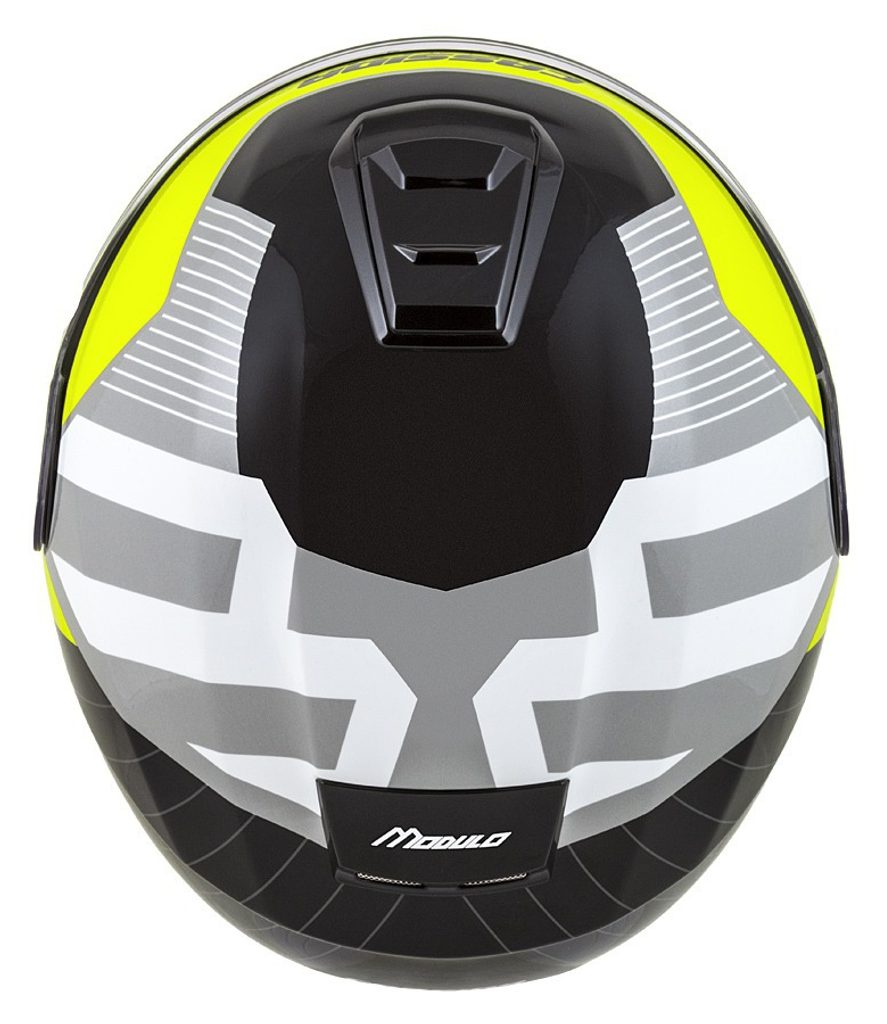 The Modulo 2.1 helmet is a touring flip-up model with a fiberglass shell and standards typical of the upper mid-range helmet category.