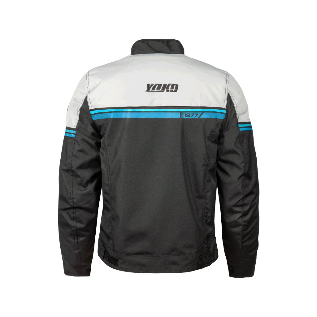 Functional textile jacket for a YOKO Gartsa motorcycle with a fitting cut and a stylish design. It is made of (CE) certified comfortable and strong material Hydropol 600. The jacket has detachable and (CE) certified elbow and shoulder protectors. Security is further enhanced by strategically placed reflective elements. Comfort is provided by a breathable and waterproof YZ lining and a permanent ventilation hole on the back. Thanks to two front pockets, a welded and waterproof inner chest pocket, the jacket provides sufficient and secure space for small items such as keys, phone, wallet and more. You can attach the jacket to any motorcycle pants thanks to the zipper at the bottom.
