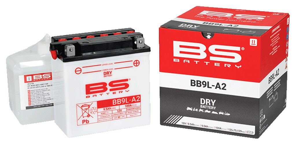 BB9L-A2 battery is part of our DRY range. Specially designed to offer good performance and reliability, this 12V 9.5Ah conventional battery is delivered with an acid pack, must be activated before first use and has to be checked periodically.
