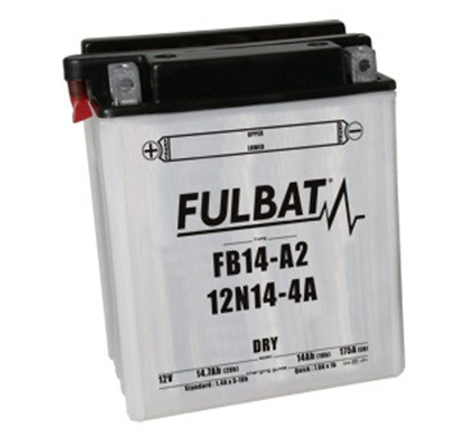 FB14-A2 /12N14-4A is part of our DRY range. Specially designed to offer good performance and vibration resistance, this 12V 14.7Ah battery is delivered with an acid pack, must be activated before first use and must be checked periodically.