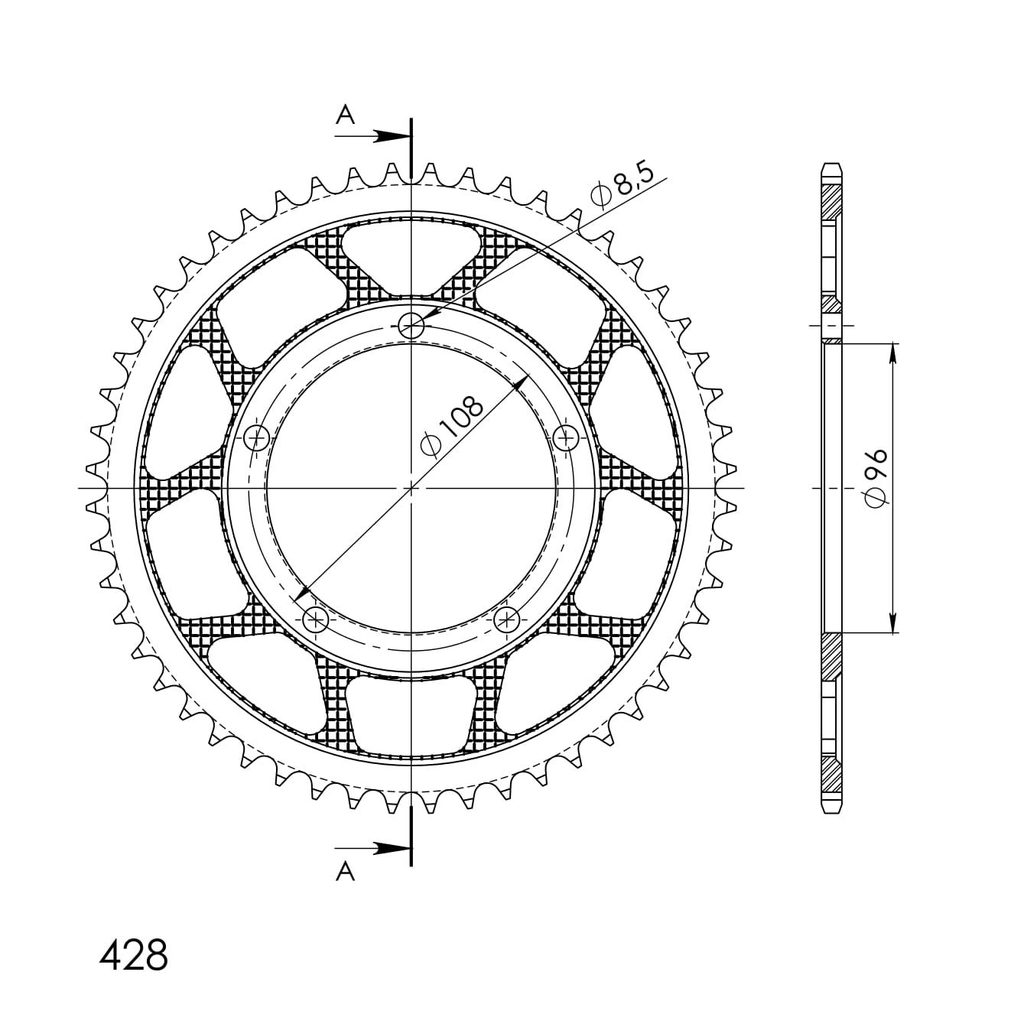 Stronger teeth for up to 10% longer chainkit lifetime. Rear sprocket 52z, chain 428. Više informacija