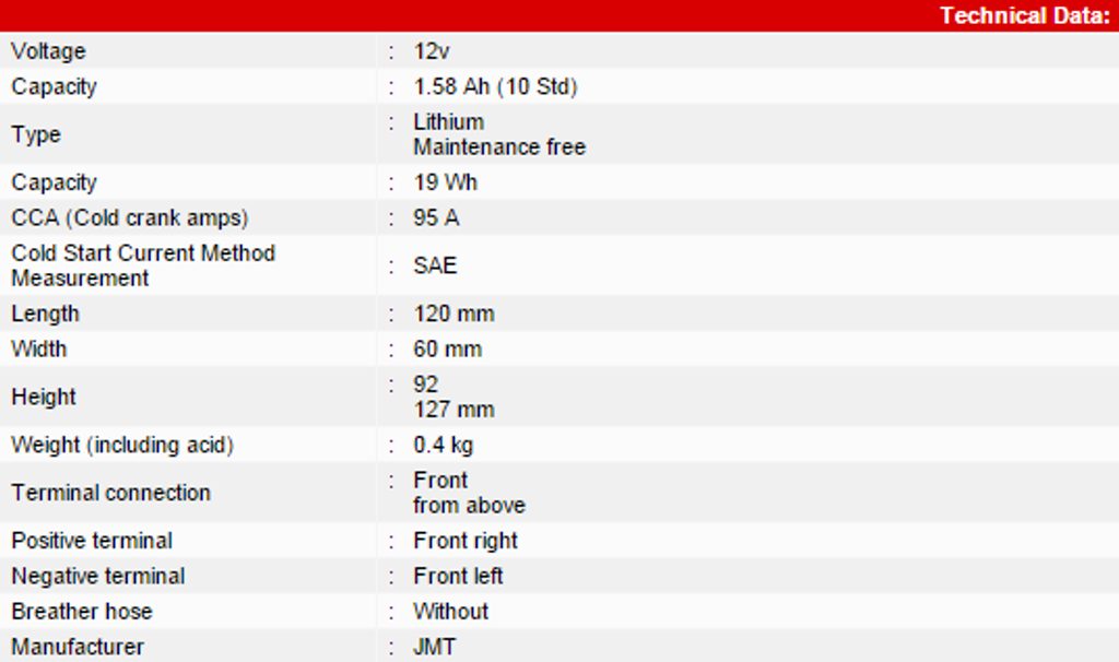 | Only 1/3 of the weight of a standard lead-acid battery | da |