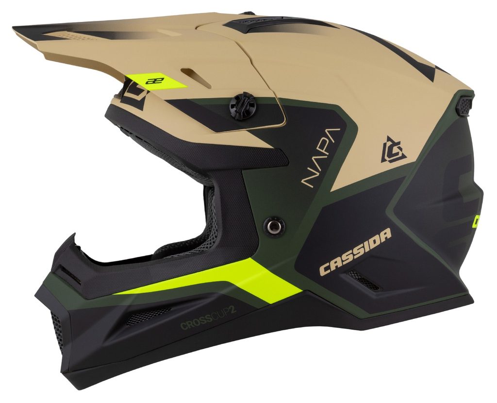 Motocross Helmet CASSIDA CROSS CUP 2 NAPA sand/ green/ yellow fluo/ black matt 2XL