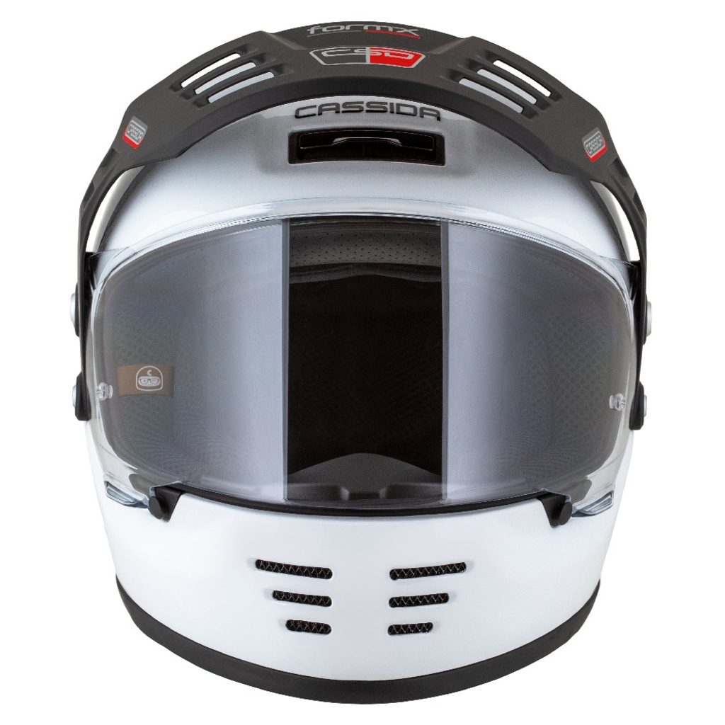Its neo-retro design is complemented by modern materials and features such as a non-slip, breathable comfort liner, speaker pockets for wireless communicators, premium CASSIDA HELMETS packaging, and a visor prepared for the Pinlock® 70 anti-fog insert.