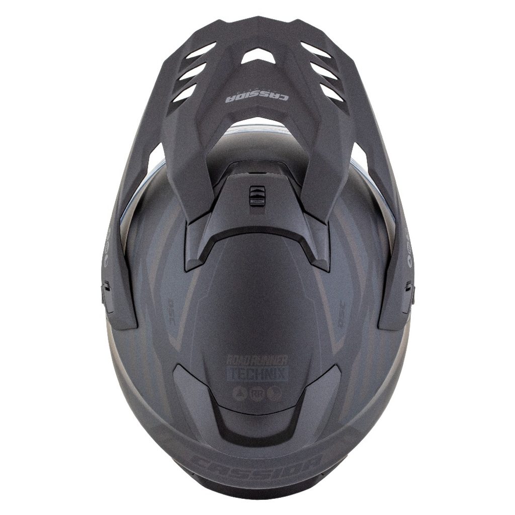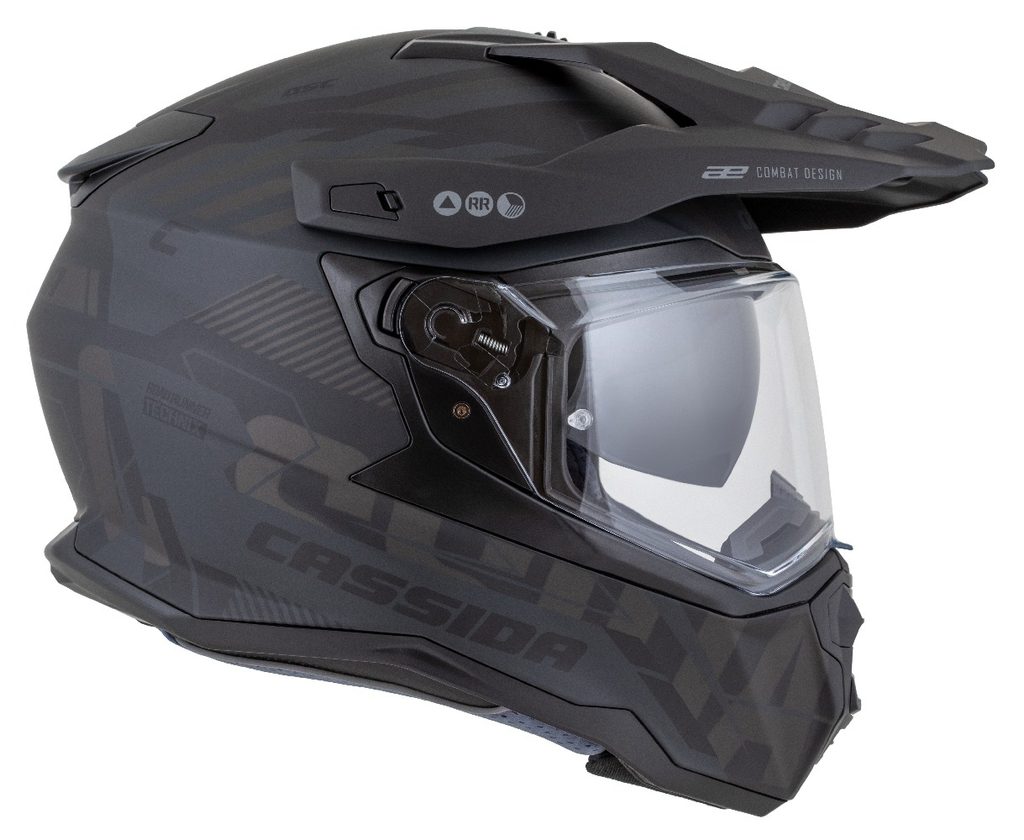 Motocross Helmet CASSIDA ROAD RUNNER TechniX black matt/ black/ grey/ black matt peak XL