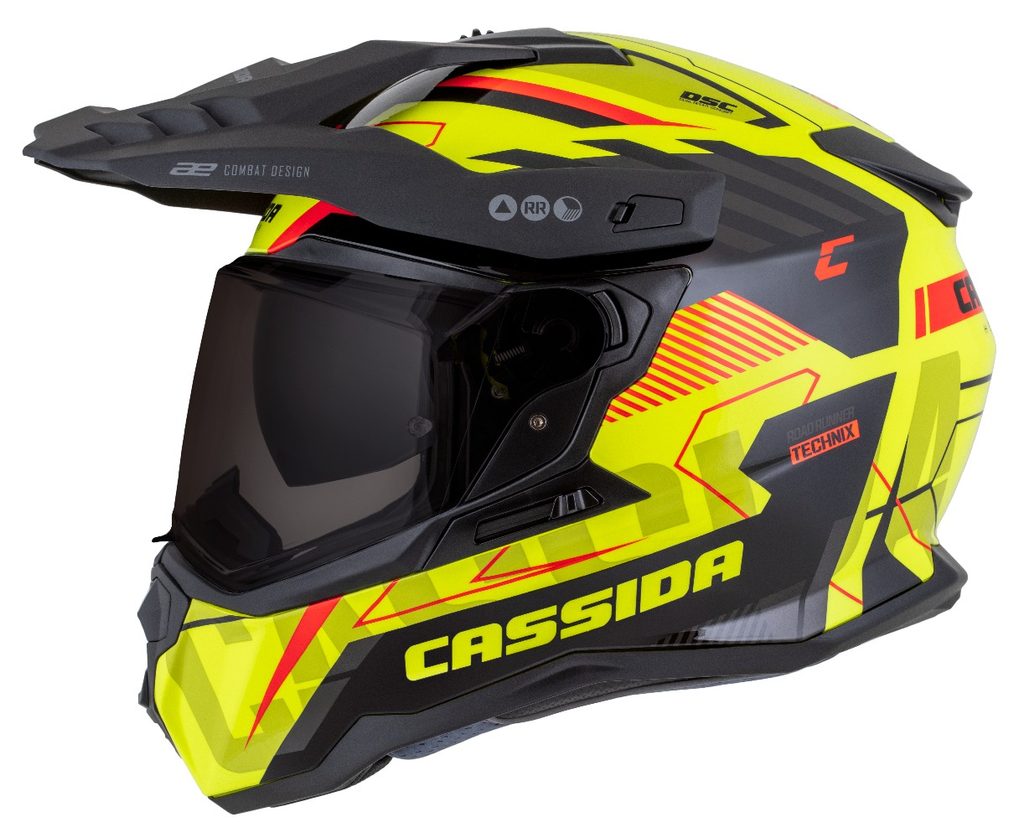 Motocross Helmet CASSIDA ROAD RUNNER TechniX yellow fluo/ black/ orange/ grey/ black matt peak XS