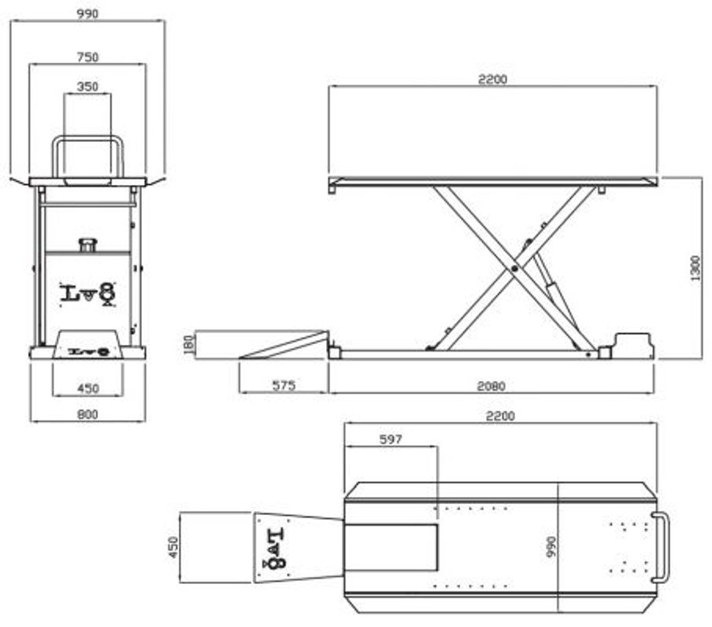 The Goldrake lift 800 kg ,designed and built in LV8, is able to fully lift 800 kg up to a height of 130 cm in all safety and stability.