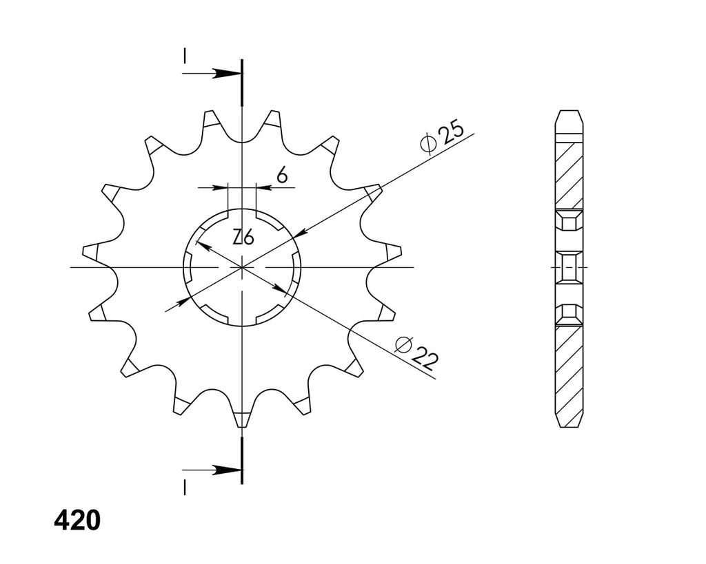 Every sprocket has weight reduction, with radial holes or radial slots (Forged models only) .