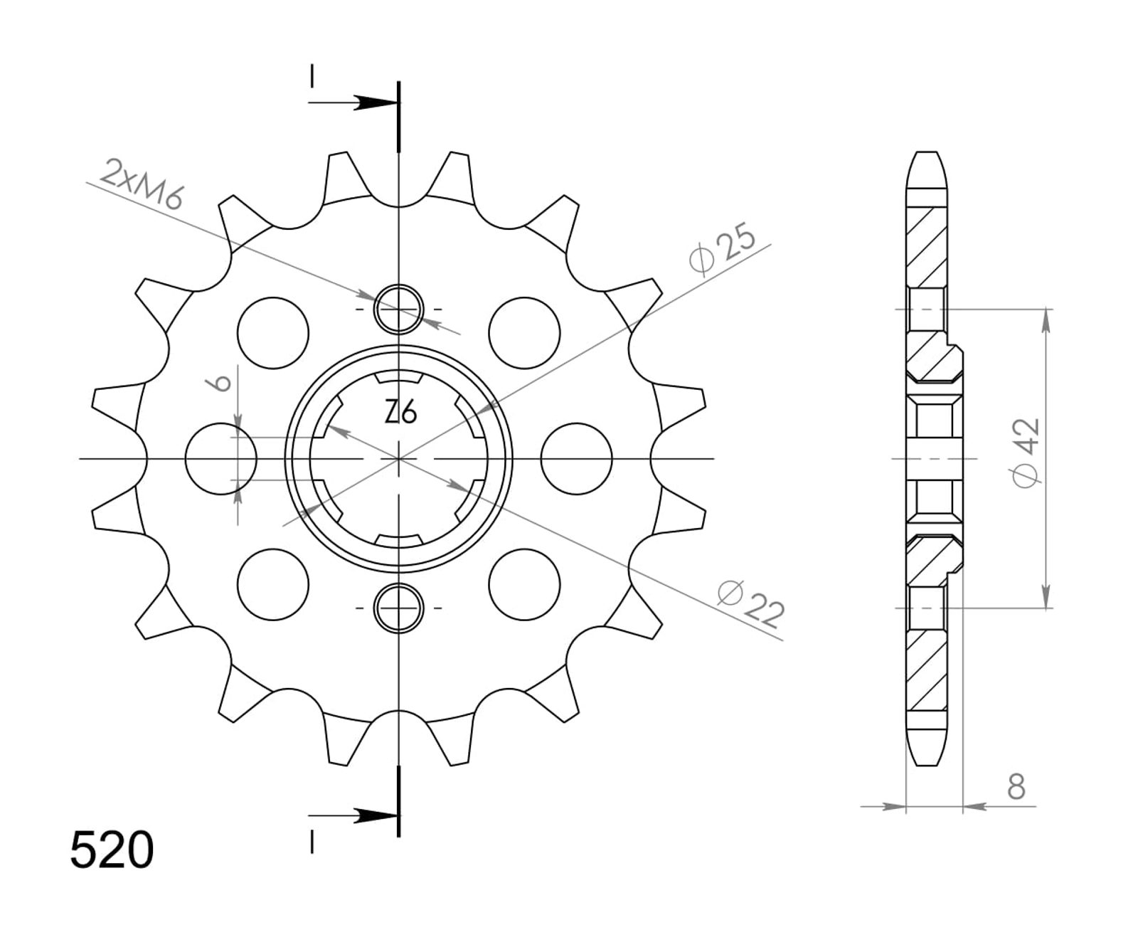 Every sprocket has weight reduction, with radial holes or radial slots (Forged models only) .