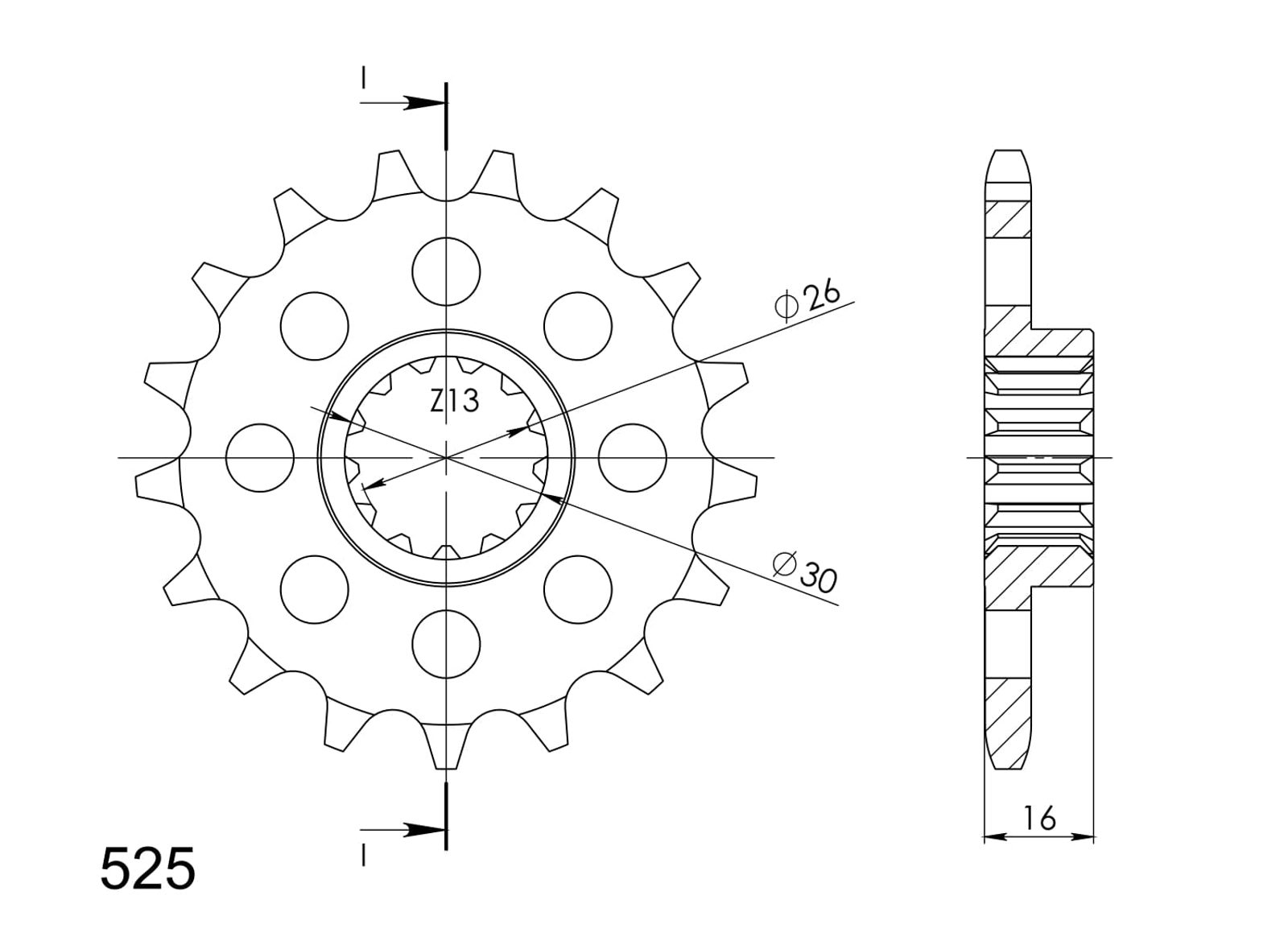 Every sprocket has weight reduction, with radial holes or radial slots (Forged models only) .