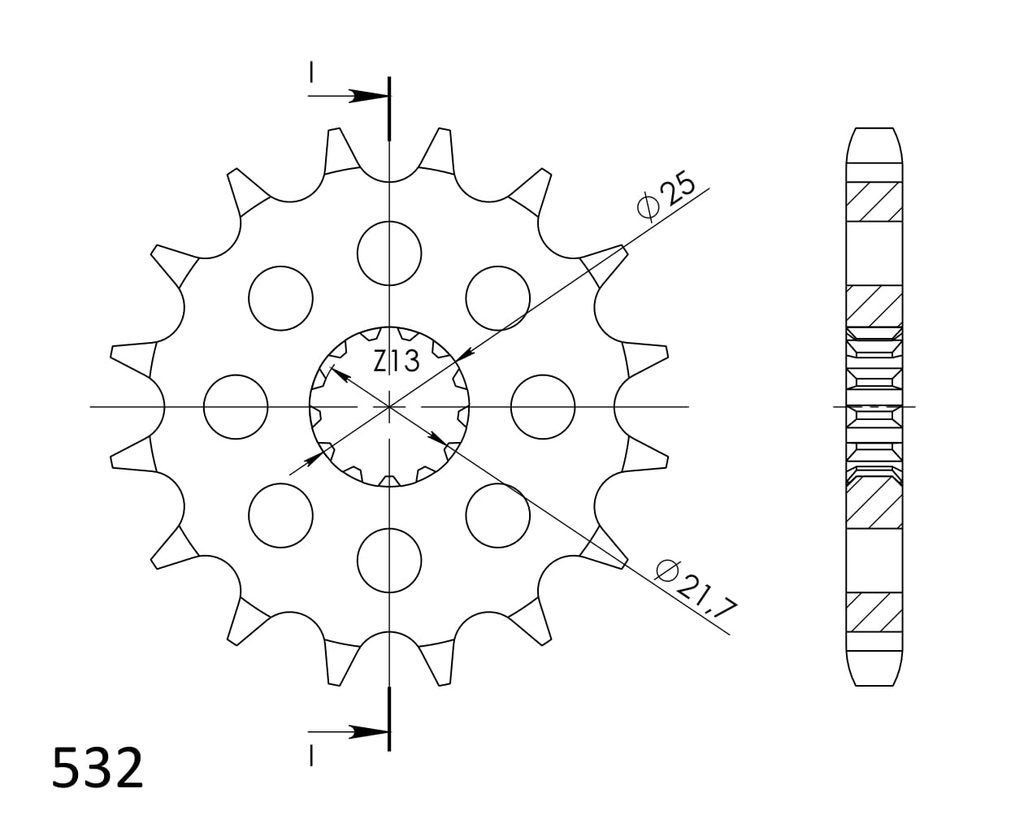 Every sprocket has weight reduction, with radial holes or radial slots (Forged models only) .