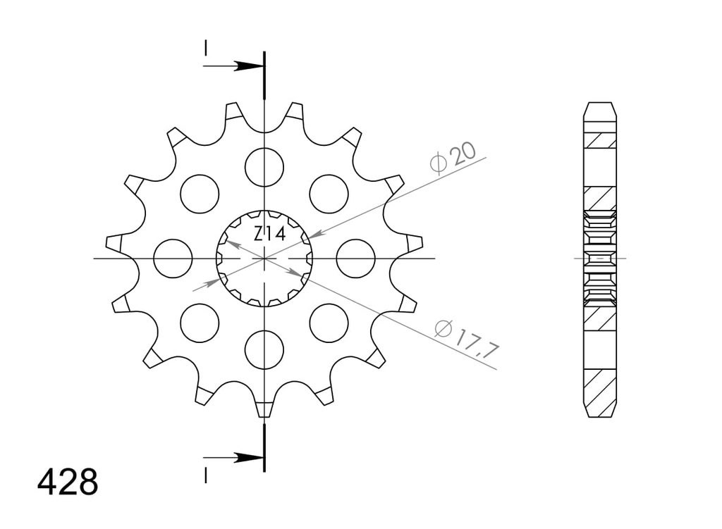Every sprocket has weight reduction, with radial holes or radial slots (Forged models only) .