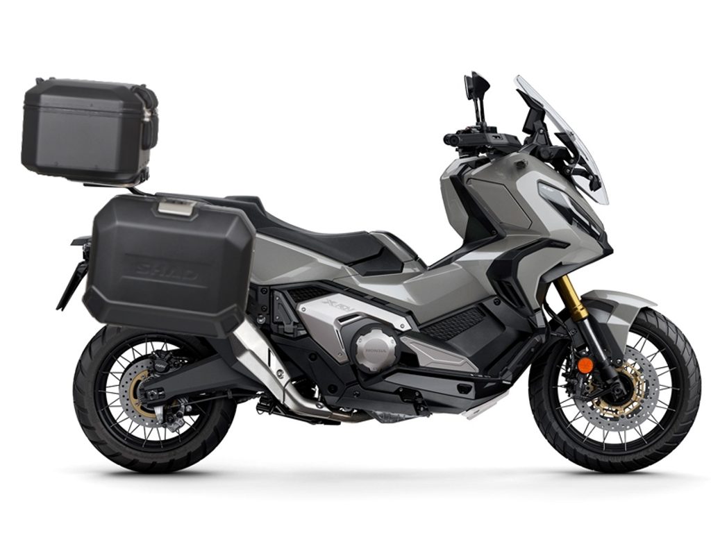 The complete set of cases SHAD TERRA BLACK includes black aluminum top case TR37 with a capacity of 37L, black aluminium left and right case TR36 with a capacity of 36L. The set contains everything you need to mount both suitcases to the motorcycle.