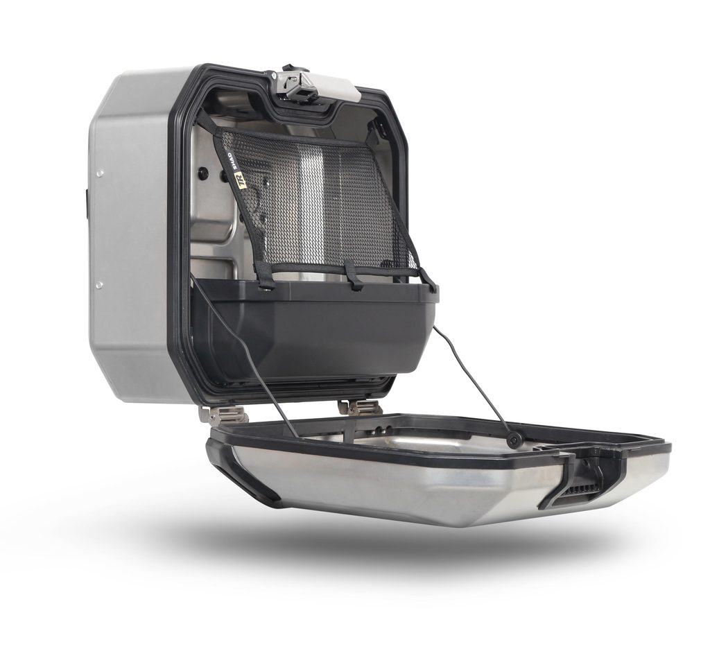 SHAD Terra panniers are designed to be used with the new 4P pannier mounting system and once mounted, offer a side opening system which gives easy and full view to all your belongings whilst keeping them in place with the parcel tray (which folds out of the way) and mesh restraint system.