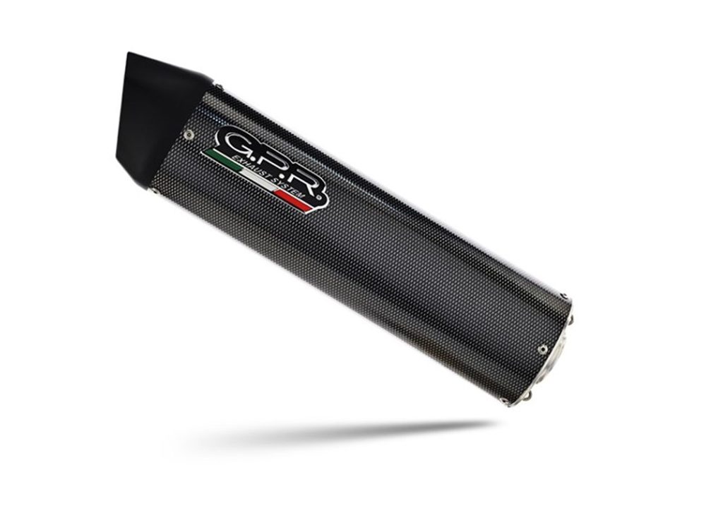 GPR's Furore Poppy silencer has a carbon look, stainless body and has been developed with a production process that produces zero impact to the environment. It has an oval shape with a diameter of 120MM, with avional bottoms produced by CNC machining.