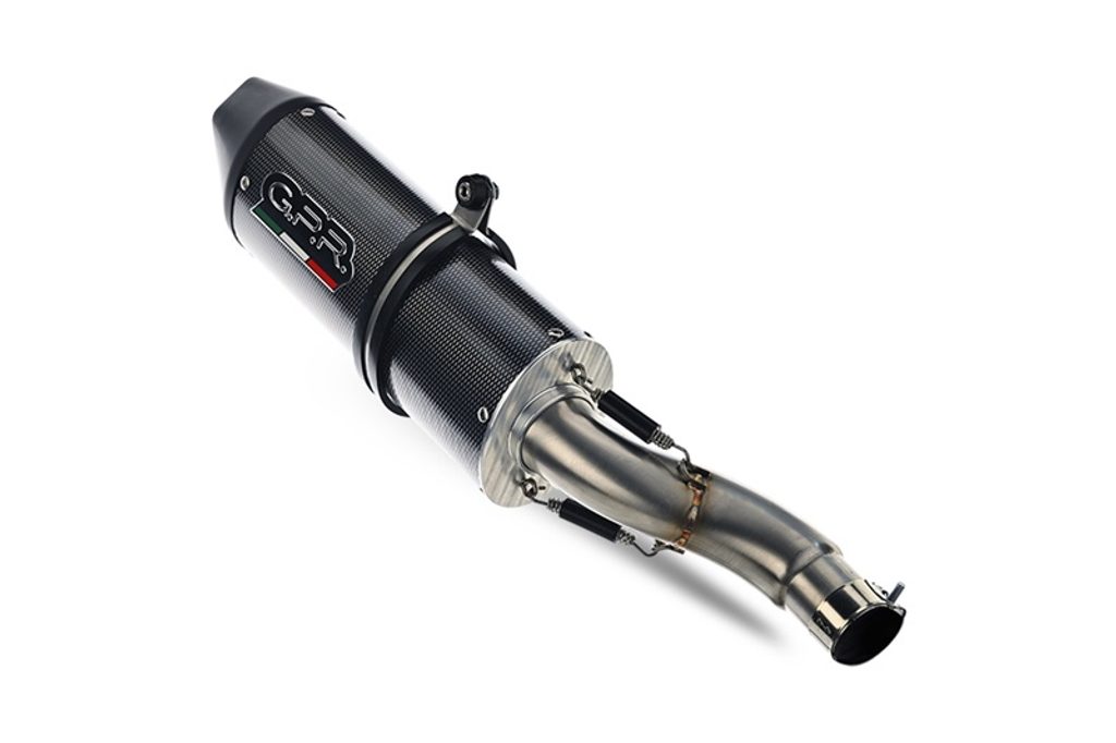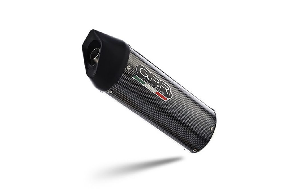 GPR's Furore Poppy silencer has a carbon look, stainless body and has been developed with a production process that produces zero impact to the environment. It has an oval shape with a diameter of 120MM, with avional bottoms produced by CNC machining.