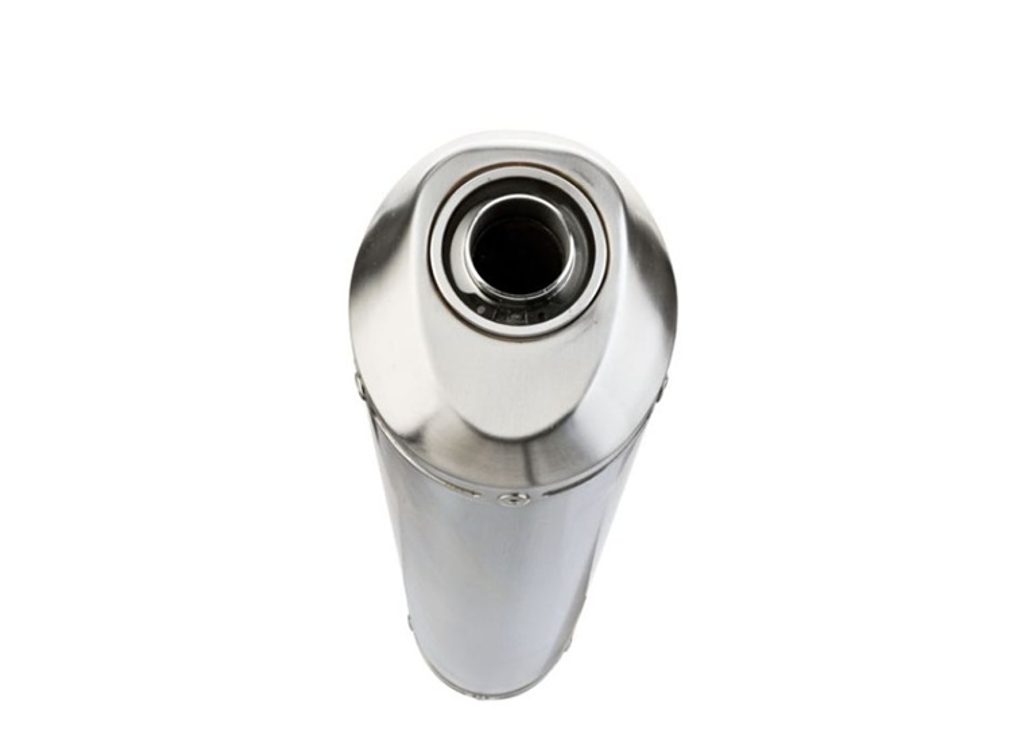 GPR's Satinox silencer is made of 304 stainless steel. It has an oval shape with a diameter of 90MM x 120MM.