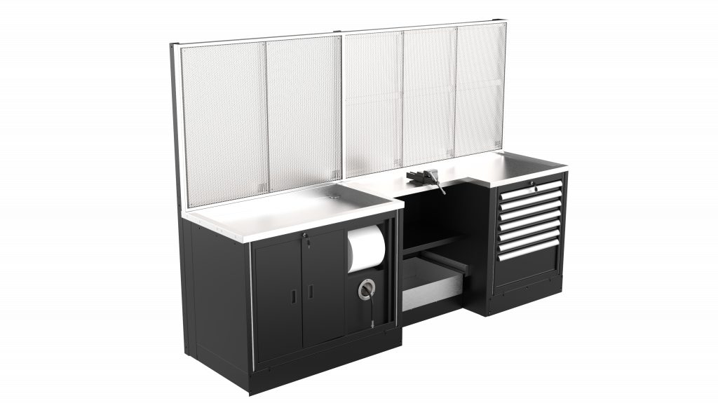 The first workstation to operate on every kind of motorcycle suspension, designed and created by the LV8 technicians and designers in collaboration with one of the most important suspensions manufacturers. L. 2800 mm configuration with stainless steel tank and top, without grids.